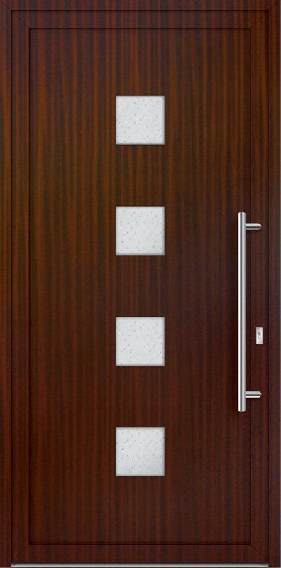 V naši ponudbi so na voljo klasična vhodna vrata T85 ter vhodna vrata s prekrivnim polnilom Schüco.